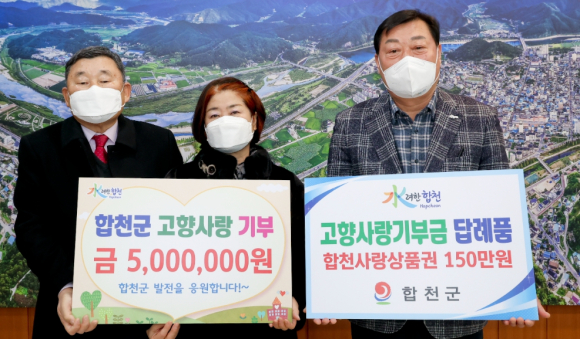 합천군 고향사랑기부제 기부행렬 이어져- 1호 기부자 부부 고향사랑 앞장서 -이광훈 기자 / |