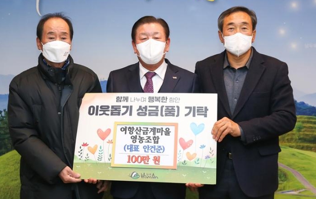 함안 여항산금계마을 영농조합, 어려운 이웃돕기 동참- 성금 100만 원 기탁 -김철상 기자 / |