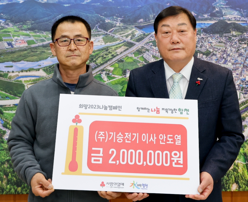 ㈜기승전기 이사 안도열, 합천군에 이웃돕기 성금 200만원 기탁이광훈 기자 / |