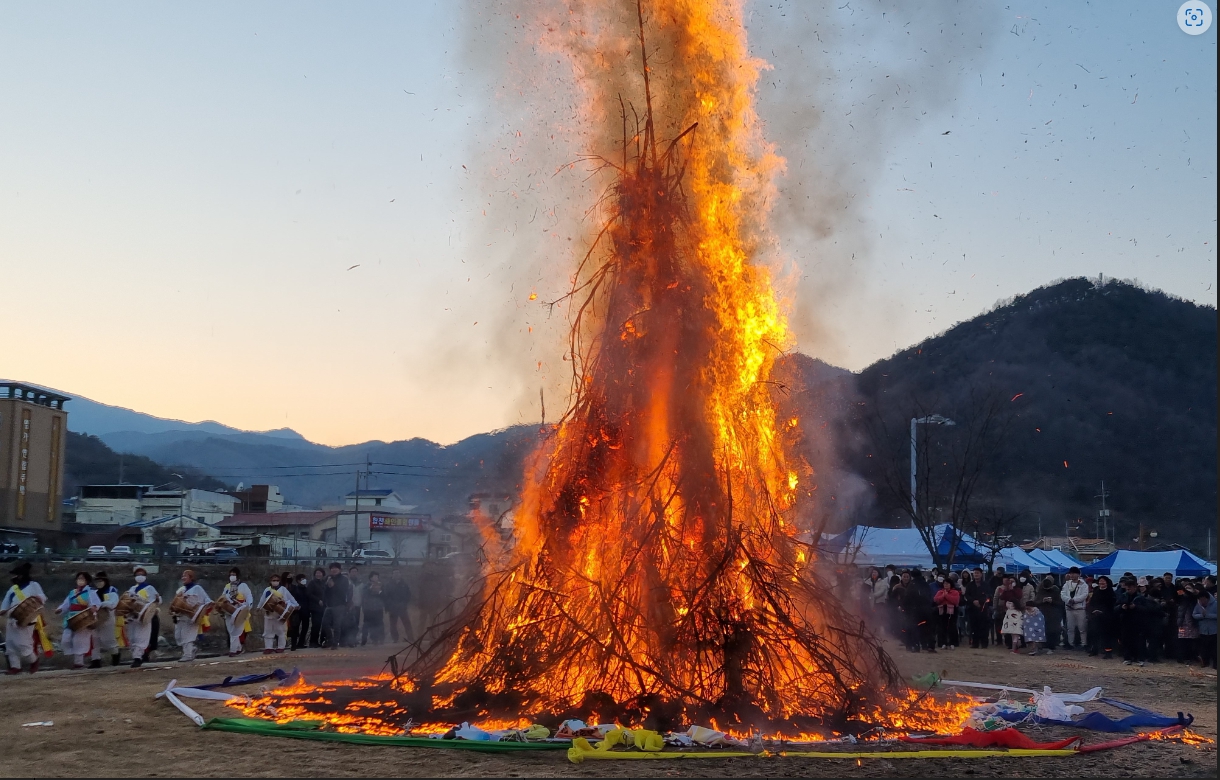 면민의 안녕과 풍년을 기원하는 풍년기원제 이어 가족의 건강과 행복을 기원하며 달집이 점화돼 정월대보름 분위기는 최고조에 달했다. 야로 주민들은 활활 타오르는 달집을 보며 액운을 쫓고, 올 한해 좋은 일만 가득하길 기원했다.