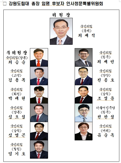 전찬환 현 강원도립대 총장의 임기가 오는 2월 28일로 만료될 예정에 따라, 강원도의회는 지난해 11월에 인사청문특별위원회를 구성하고 12월에는 12명의 위원을 선임하면서 본격적으로 인사청문 준비를 진행해 왔다