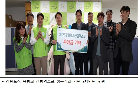 -「2023 강원세계산림엑스포」성공개최 기원 - 강원도청 육림회 3백만원 기탁NULL정유근 기자 / |