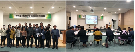 ....................................【주 요 행 사】..................................... □ 건강증진과, 「평창군 건강위원회 간담회」개최 ੦ 어제(4.26.) 10:00, 평창군 건강증진과는 보건의료원 대회의실에서 8개 읍·면 건강위원회 임원진 등 30명이 참석한 가운데 건강마을조성 지원사업 평창군 건강위원회 간담회를 개최하여 2023년 읍·면 별 활동계획 공유와 하반기 활동에 관해 논의하는 자리를 가졌음. ੦ 주민주도형 지역 건강공동체 개념을 확립하고 지역 건강문제에 대한 관심과 활동을 통해 건강지킴이로서 건강증진을 도모할 것으로 기대함.