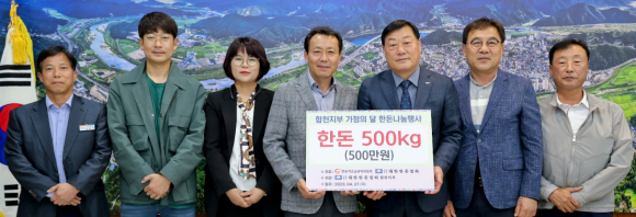 합천군 대한한돈협회 합천지부 한돈나눔행사 가져- 가정의 달 5월 맞이 돼지고기(한돈) 500kg 기탁 -이광훈 기자 / |