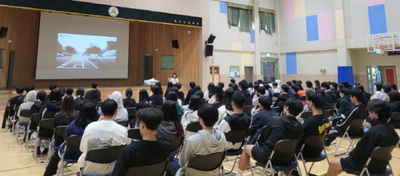 함양서, 안의고등학교 찾아가는 교통안전교육 실시- 전교생 대상 시청각 교통안전교육 실시 -이광훈 기자 / |