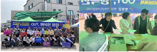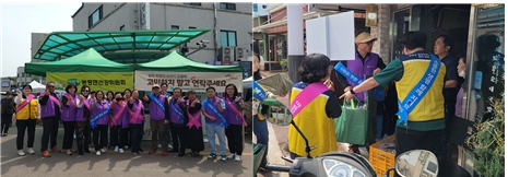 □ 평창군 여성단체협의회, 2023 평창군 폭력예방캠페인 실시 ੦ 지난(5.12.), 평창군 여성단체협의회(회장 조혜경)은 회원 20명과 함께 봉평 장날을 맞아 많은 관광객과 주민들을 대상으로 4대 폭력, 사이버폭력 등을 예방하기 위한‘2023 폭력예방캠페인’을 실시하였음.