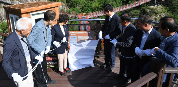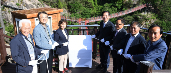 | 이날 현판식에 참석한 구인모 거창군수는 “거창 Y자 출렁다리가 국내 최초로 세계적인 우수 구조물로 선정된 것은, 우리 거창이 자연과 공존하는 산림‧휴양 관광지로써의 우수성을 인정받은 것으로, 이를 토대로 거창군은 동쪽의 항노화 힐링랜드, 서쪽의 수승대, 남쪽의 창포원 및 감악산, 북쪽의 산림 레포츠파크를 연결하여 ‘동서남북 권역별 관광 벨트’를 완성하고, ‘산림관광 100만 명 시대’를 달성할 수 있도록 더욱 노력하겠다”라고 말했다.