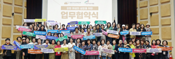이날 업무협약식에는 고창영 (재)한국여성수련원장과 안정희 (사)강원여성단체협의회 회장과 함께 회원 120여명이 참석했다.