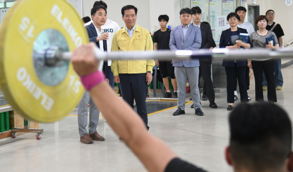 구인모 거창군수, 경남도민체전 선수단 훈련장 방문거창군 대표 참가 선수 522명 선전 기원김도형 기자 / |