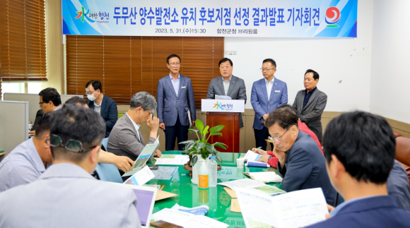 합천군(군수 김윤철)은 31일 묘산면 산제, 가야, 반포 이장과 봉산면 압곡1, 2, 3구 마을 이장과 간담회를 거쳐 두무산 양수발전소 유치 후보지를 상부저수지는 묘산면 산제리 일원, 하부저수지는 묘산면 반포리 일원으로 결정했다고 밝혔다.