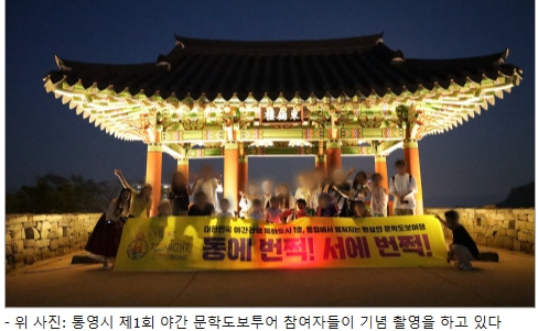 2023년 6월 5일 통영 여행의 중심지 강구안 문화마당 일원과 근·현대문학 명소를 따라 이동하며 진행되는 통영 야간 문학도보투어 ‘동에 번쩍, 서에 번쩍’이 첫 시범 운영됐다.