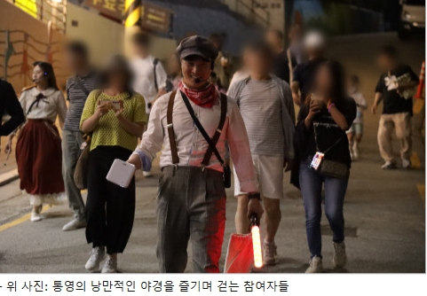 통영 야간 문학도보투어는 야간관광 특화도시 사업의 하나로, 그동안 야간경관·조명에 치우친 하드웨어 야간 볼거리와는 달리 통영의 숨겨진 스토리를 찾아 떠나는 소프트웨어형 야간 콘텐츠다.