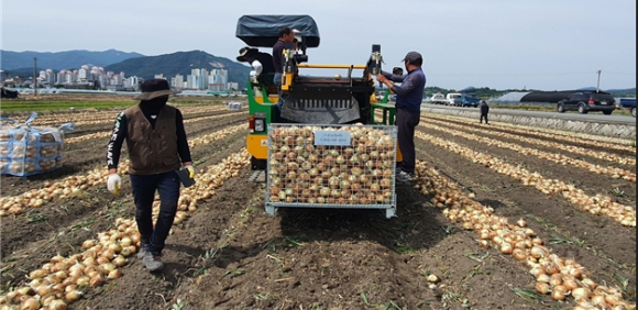 함양군 2023년산 양파 수확 시작, 예건 후 수확작업 당부NULL정유근 기자 / |