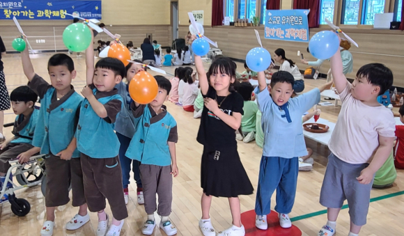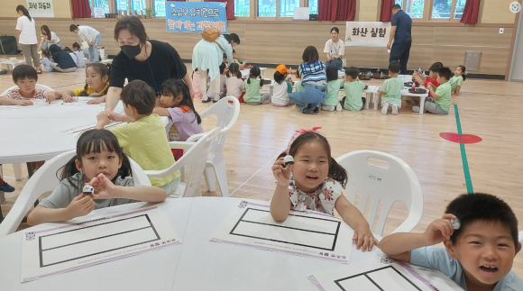 함양 금반초등학교병설유치원(원장 백종필)은 16일 함양지역 9개 병설유치원 원아 60여명과 함께 강당에서 신기하고 재미있는 과학체험 교육활동의 시간을 가졌다.