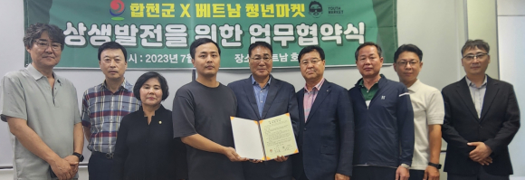 합천군(군수 김윤철)은 베트남 호치민 7군 현지에 위치한 한인마트 ‘청년마켓’에서 합천군 농특산물 홍보 및 판로개척을 위한 안테나숍을 지난 8일 개장해 운영하고 있다고 10일 밝혔다.