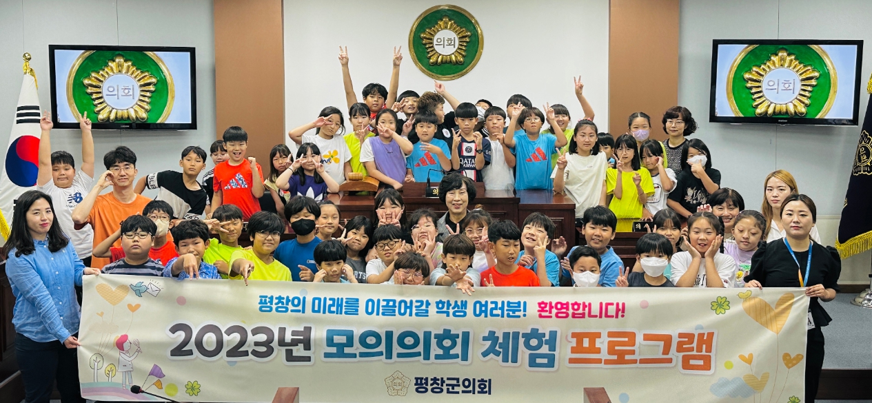 이번 모의의회는 평창초등학교(교장 김기성) 4학년 학생 50여명이 방문하여 진행됐으며, 학생들이 의장, 의원, 의회사무과장, 의사팀장 역할을 맡아 모의 본회의를 진행해 보는 의미 있는 시간을 가졌다.