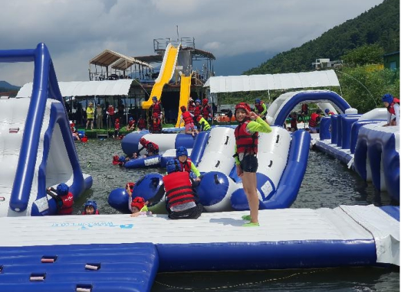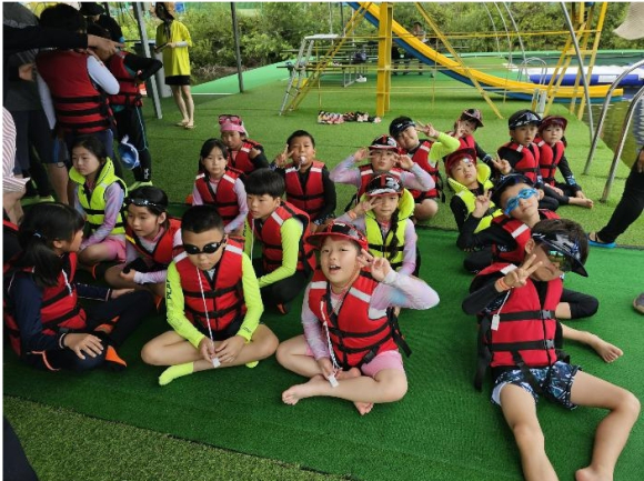 함양 위림초등학교(교장 하정영)는?7월?11일(화)?전북 장수논개수상레저에서 대자연 속의 자연생태와 극기 정신, 진취적 기상, 공동체 의식을 기르고자 여름 현장체험학습을 실시하였다. 수상레저 체험을 하기 전 각 반 교실에서 물놀이 안전 수칙 등 안전교육이 이루어졌으며 5월에 실시한 생존수영학습으로 학생들은 물과 좀 더 친숙해진 상태에서 아슬아슬 밧줄로 물 건너 가기, 물 위의 징검다리 건너기, 물에 빠진 친구 구출하기, 트램플린, 워터슬라이드 등 다양한 워터파크 체험을 하였다.