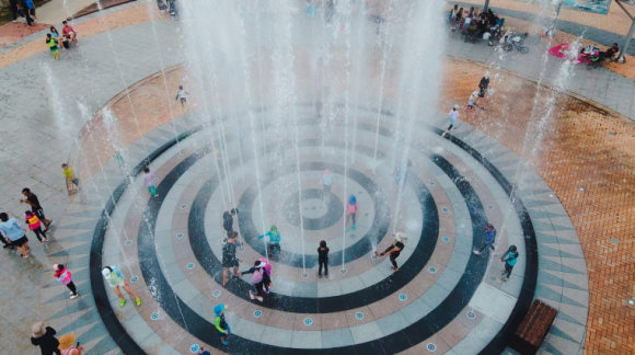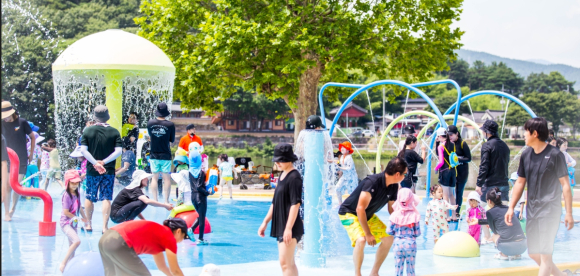 나무그늘 아래 축제장을 가로질러 흐르는 실개천(계류시설)에 아이들이 발을 담그고 앉아 놀기에 안성맞춤이다. 물안개가 나오는 쿨링포그도 설치돼 색다른 재미를 준다.