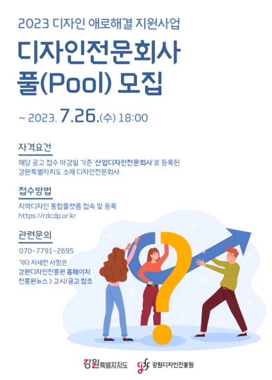강원디자인진흥원, 디자인애로해결지원사업 추진- 작은기업 디자인애로해결에 참여할 디자인전문회사 풀(Pool) 모집-정유근 기자 / |