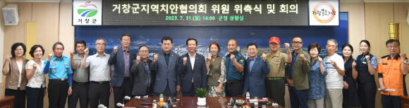 회의는 거창군지역치안협의회 위원 위촉장 수여, 협의회 현황 및 회의 안건 설명, 위원 인사, 지역치안을 위한 협업 논의 순으로 진행됐다.