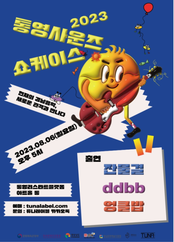 먼저 다가오는 6일에는 ‘튜나레이블’의 ‘2023 통영사운즈 쇼케이스’를 통영 리스타트 플랫폼에서 개최한다. ‘현재의 경남 음악, 새로운 관객과 만나다.’라는 주제로 ‘엉클밥’, ‘잔물결’, ‘ddbb’ 등 지역 뮤지션의 공연이 펼쳐진다.