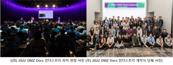 | ↑↑ [(좌) 2022 DMZ Docs 인더스트리 피치 현장 사진 (우) 2022 DMZ Docs 인더스트리 개막식 단체 사진] |