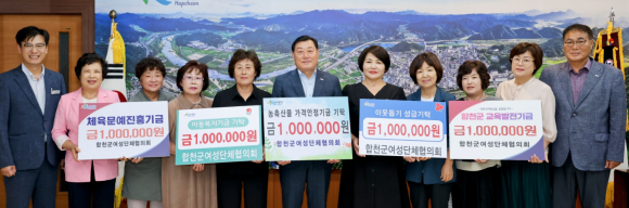 합천군여성단체협의회, 지역 발전을 위해 500만원 기탁- 이웃돕기성금, 아동복지기금, 교육발전기금,체육문예진흥기금, 농축산물 가격안정기금 각 1백만원 기탁 - 이광훈 기자 / |