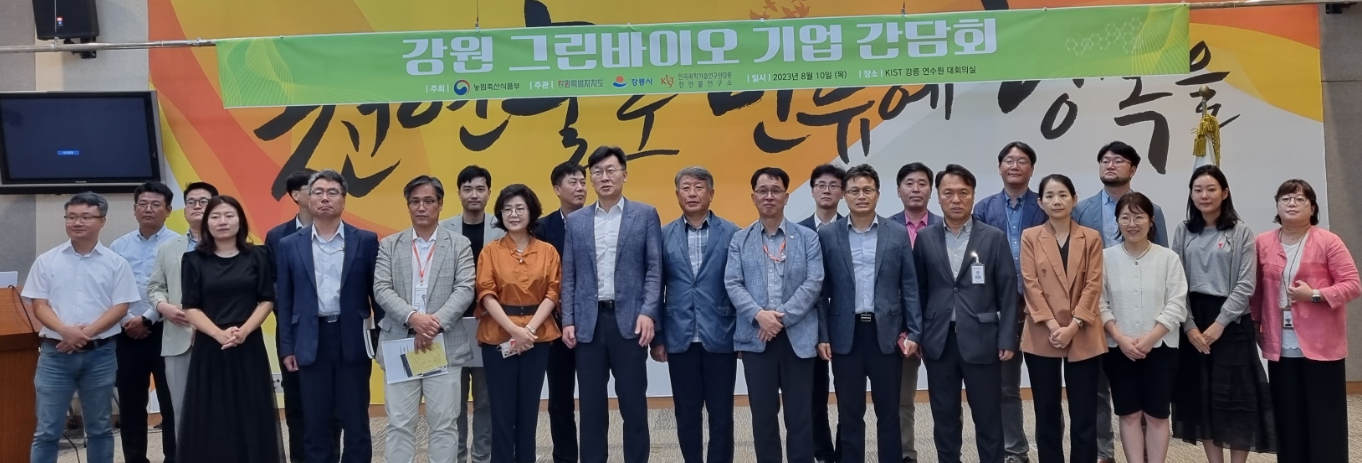 강원특별자치도는 지난 8. 10일 한국과학기술연구원(KIST) 강릉분원에서 농림축산식품부, 강릉시, 한국과학기술연구원(KIST) 강릉분원과 함께 「강원 그린바이오 기업 현장 간담회」를 개최하였다.