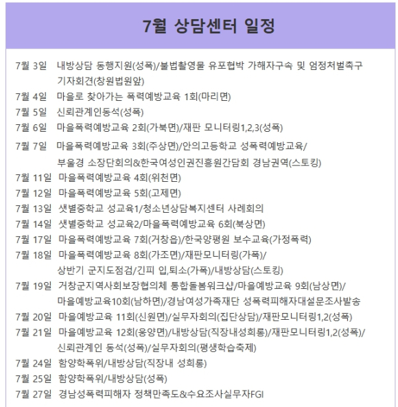 거창젠더폭력통합상담센터 2023년 7월 소식지NULL김도형 기자 /