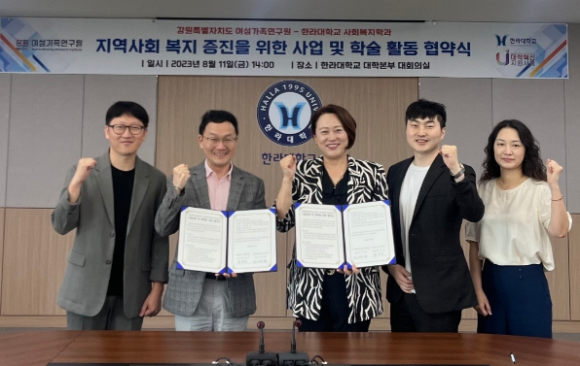 강원특별자치도여성가족연구원 업무협약-한림대학교 사회복지학부, 한라대학교 사회복지학과 지역협력 교류 및 청년정책개발 사업 업무협약정유근 기자 / |