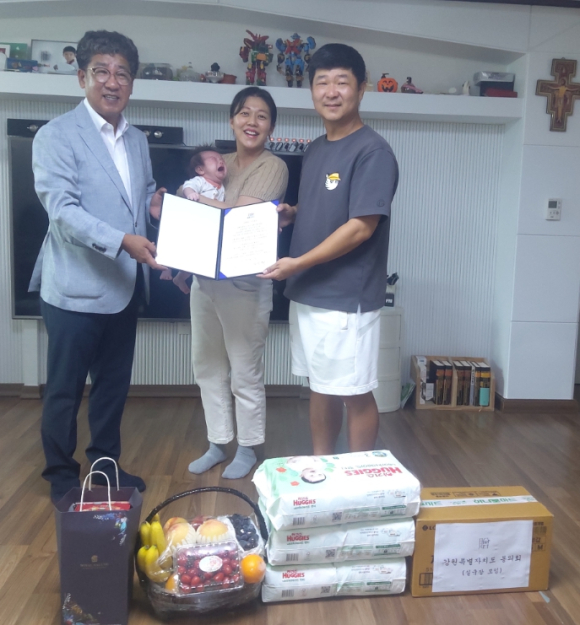 도청 국장 모임인 ‘봉의회’에서도 8월 20일 상윤군 출산 선물로 기저귀, 분유 등 신생아 물품세트를 전달했다.