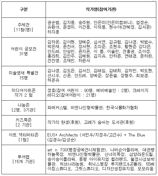 신지희 강원트리엔날레 운영실장은 “기획 초기부터 어린이 중심행사로서 어린이가 주제선정과 포스터 제작, 운영 참여 등 주요 사안과 함께하여 진정한 어린이 행사로 기획”했다고 기획방향을 언급했다.