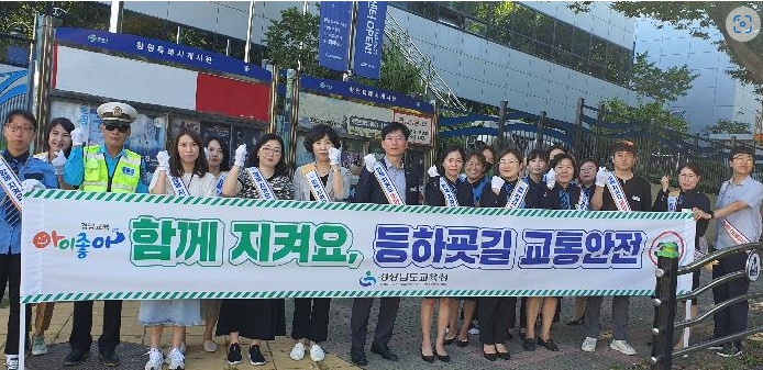 교육청과 지역이 함께하는 교통안전 홍보창원 팔용교육단지 사거리에서 녹색어머니회, 모범운전자회 등 참여최정현 기자 / |