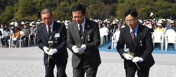 | 구인모 거창군수는 추모사를 통해 “지난해 대법원은 유족들이 국가를 상대로 낸 손해배상 청구소송에서 ‘거창사건’은 민간인 집단 희생사건으로 소멸시효가 적용되지 않는다고 판결한 만큼, 하루빨리 배·보상 문제가 해결되기를 바란다”라며 “거창군에서도 거창사건의 진실을 알리는 적극적인 활동을 통해 배·보상법이 통과될 수 있도록 노력하겠다”라고 말했다.