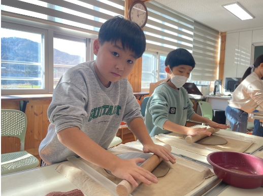 강사의 안내에 따라 학생들은 조그마한 손으로 흙을 조물조물 만져보고, 일어서서 힘껏 밀대를 밀어보았다. 달걀크기의 덩어리를 손바닥과 손가락으로 밀어보며 점점 길어지는 흙덩이가 신기한지, 제법 힘이 들어가는 활동임에도 불구하고 즐겁게 활동에 참여하였다.