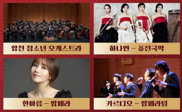 | 이번 ‘The Story Of Music’(하나되는 음악 이야기) 공연에서는 △합천 청소년 오케스트라의 OST공연 △하나연 공연팀의 국악과 클래식을 더한 퓨전국악 △팝페라의 뮤지컬 공연(한아름, 카르디오) 등 각 분야의 실력파 공연진들이 아름다운 공연을 선보일 예정이다. 또한 모든 공연진이 함께 진행하는 크리스마스 캐럴까지 다양한 볼거리를 제공할 예정이다. 유성경 관광진흥과장은 “합천영상테마파크에서 다채로운 볼거리를 제공해 크리스마스를 즐기러 오는 관람객들에게 잊지 못할 아름다운 추억을 선사하겠다”고 전했다.