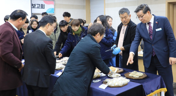함양군, 대표 먹거리 상품화 개발 중간보고회 진행18일 소회의실서 먹거리 공모전 수상 ‘함떡’ 상품화 관련 시식 및 의견 교환정호 기자 / |