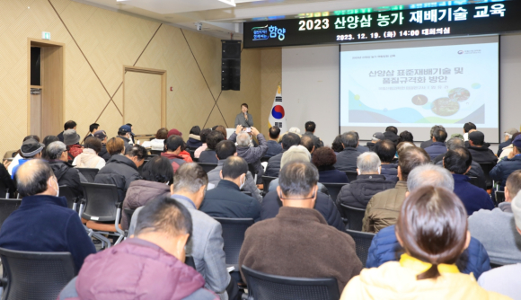 함양군, 명품 산양삼 생산 산양삼 농가 교육19일 농가 및 담당 공무원 등 100여명 참석, 표준 재배 기술 보급·24년도 정책 설명정호 기자 / |