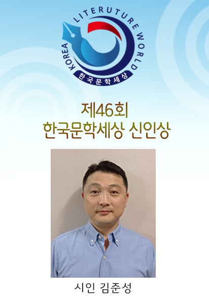 한국문학세상(회장 김영일)은, 지난 11월에 ‘종이 없는 작가등용문’으로 ‘제46회 한국문학세상 신인상’을 온라인백일장시스템으로 공모하여, 시부문 당선자로 김준성을 선정했다.