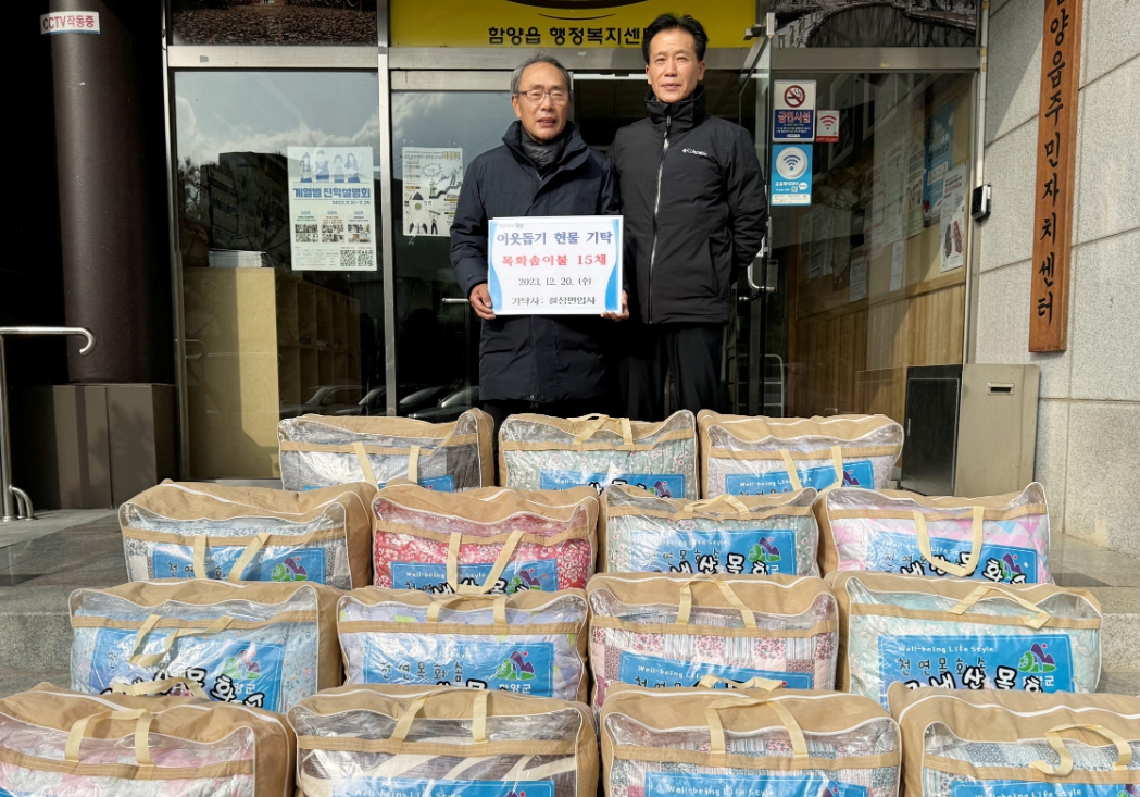 함양 칠성면업사 임채장 대표, 올해도 목화솜 이불 15채 기부10여년 넘게 지속적으로 이어지고 있는 나눔 실천이 따뜻한 마음으로 전해져..정호 기자 / |