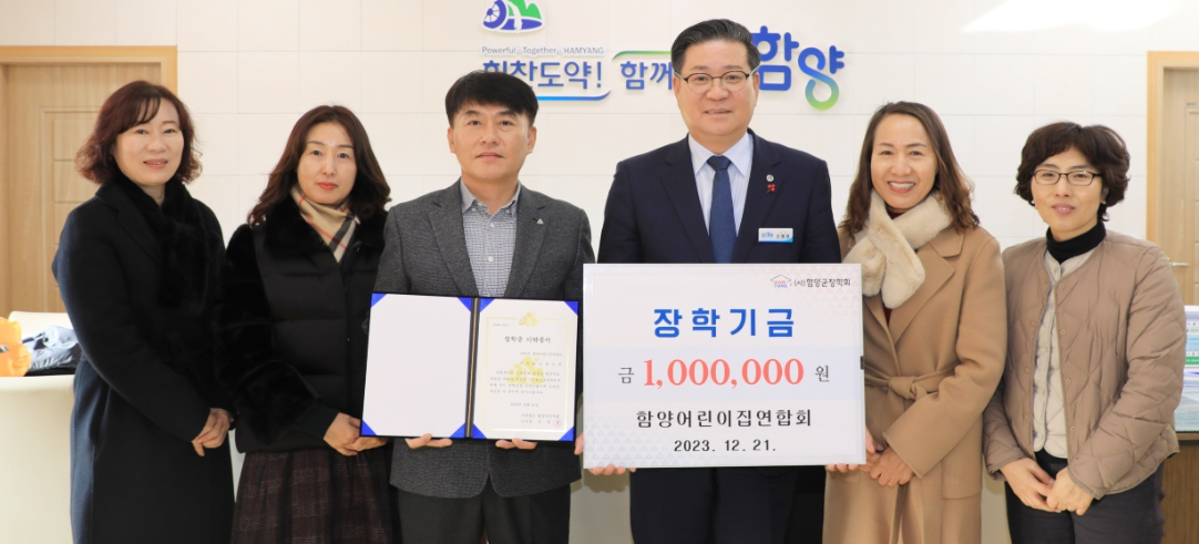 (사)함양군장학회에 장학금 기탁 이어져함양군 어린이집연합회·상림주말장터 회원 각 100만원 장학금 기탁정호 기자 / |