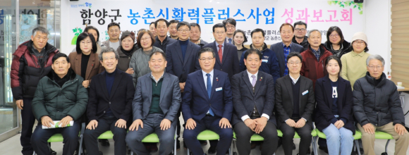경남 함양군은 지난 21일 항노화관에서 진병영 함양군수와 서창우 부군수, 박용운 함양군의장, 양인호 산업건설위원장, 정복만 농촌신활력플러스사업 추진단장, 지역활동가조직(액션그룹) 회원 등 80여 명이 참석한 가운데 ‘농촌신활력플러스사업 추진단 사업성과보고회’를 개최했다.