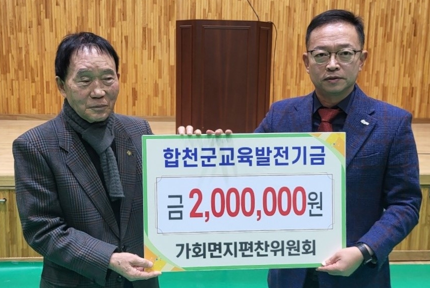 가회면지편찬위원회, 합천군에 교육발전기금 기탁- 지역 인재육성에 써달라며 쾌척 -이광훈 기자 / |