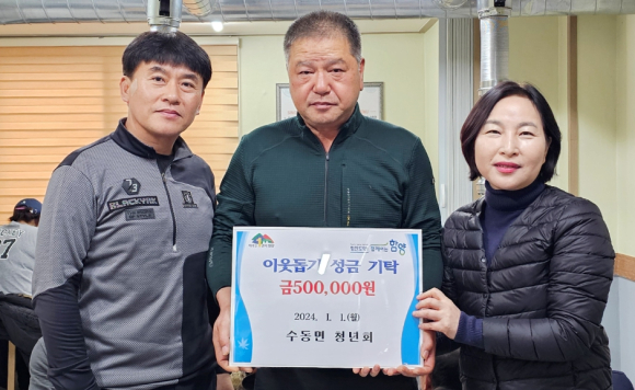 함양 수동면 체육회·청년회 이웃돕기 성금 기탁수동면체육회 100만원·수동면 청년회 50만원 기탁정호 기자 / |