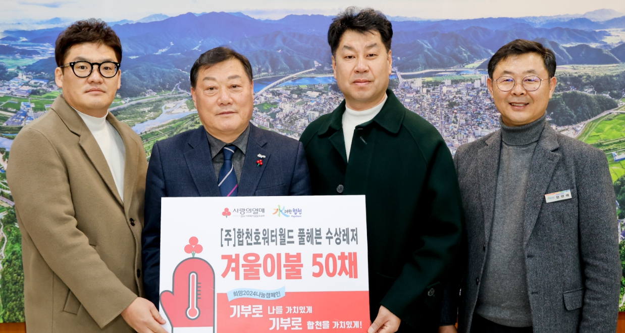 (주)합천호워터월드 풀헤븐 수상레저, 합천군에 이웃돕기 성품 겨울 이불 50채 기탁기탁받은 성금은 경남사회복지공동모금회를 통해 관내 어려운 이웃에 지원할 계획이광훈 기자 / |