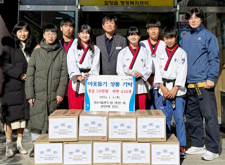 함양 가온태권도 관장 성금 50만원·관원 라면 430봉 기탁7년째 이어지는 나눔 실천으로 연말연시 어려운 이웃에게 희망 전달정호 기자 / |