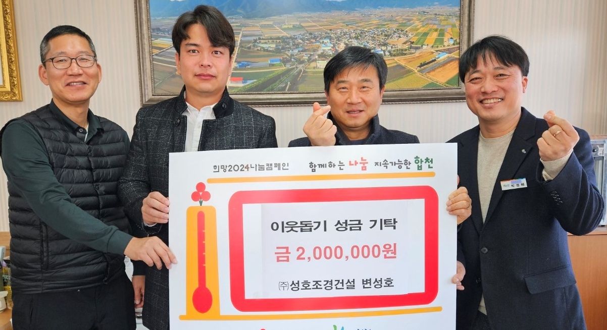합천군 ㈜성호조경건설 변성호 대표, 이웃돕기 성금 200만원 기탁NULL이광훈 기자 / |