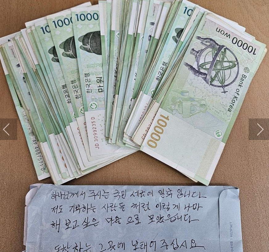 계성면 익명의 기부 천사, 현금 100만원 기탁= 기부자의 뜻에 따라 관내 어려운 이웃을 위해 사용 예정 =정유근 기자 / |