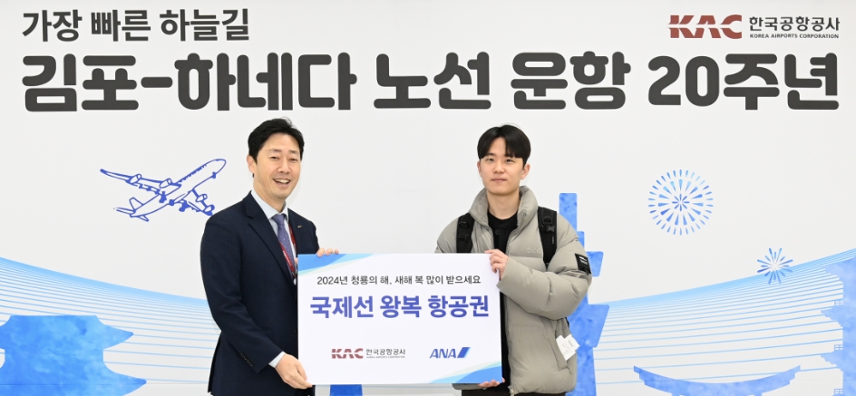 윤형중 사장은 김포공항의 새해 첫 국제선 항공편인 ANA862편을 이용해 일본 하네다공항으로 출발하는 여객에게 감사의 마음을 담아 김포-하네다 왕복항공권 등 선물을 증정했다. 이는 2024년 국제여객 2천만명, 총 여객 9천만명 달성을 통해 창사 이래 첫 매출 1조원 시대를 열겠다는 공사의 의지를 담은 것이다.