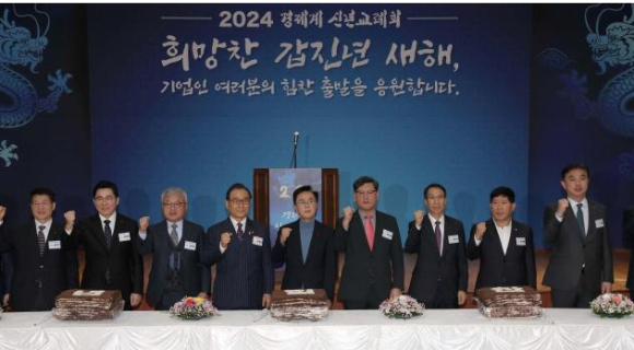 김 지사는 5일 천안시에 위치한 충남북부상공회의소 대회의실에서 열린 ‘2024년 충남경제계 신년교례회’에서 참석자들과 갑진년 새해 희망과 비전을 공유하고 충남경제의 새로운 도약을 다짐했다.